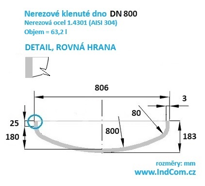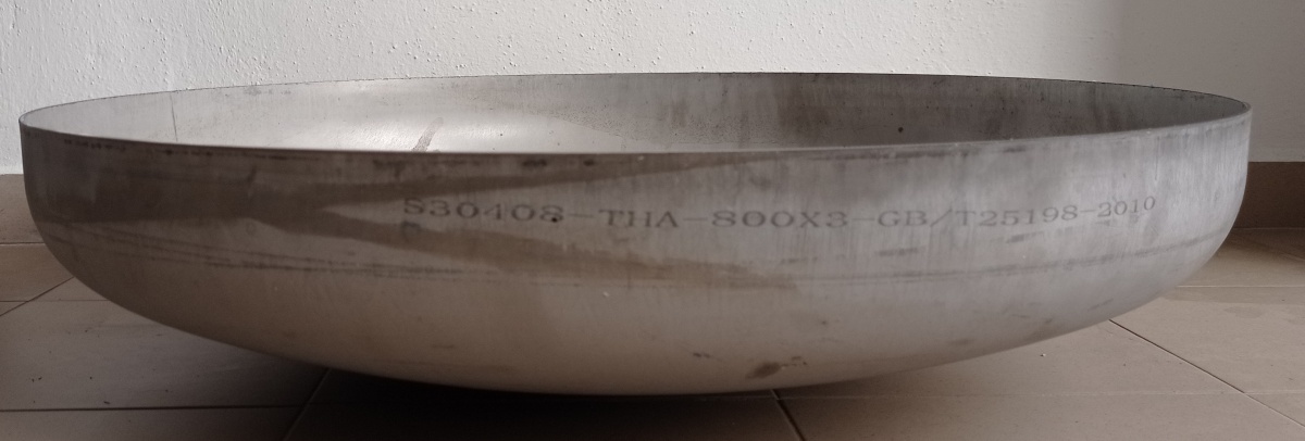 Stainless steel dished bottom cold-pressed, non-annealed, non-stained, raw surface after pressing, straight edge.