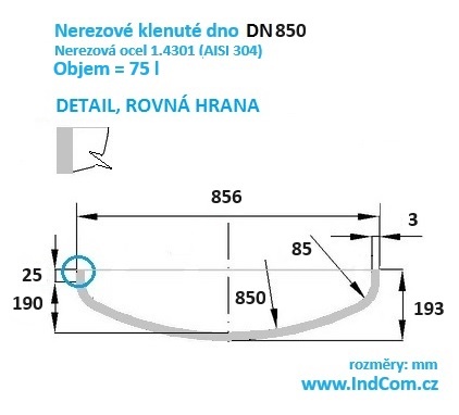 Stainless steel dished bottom cold-pressed, non-annealed, non-stained, raw surface after pressing, inclined edge.