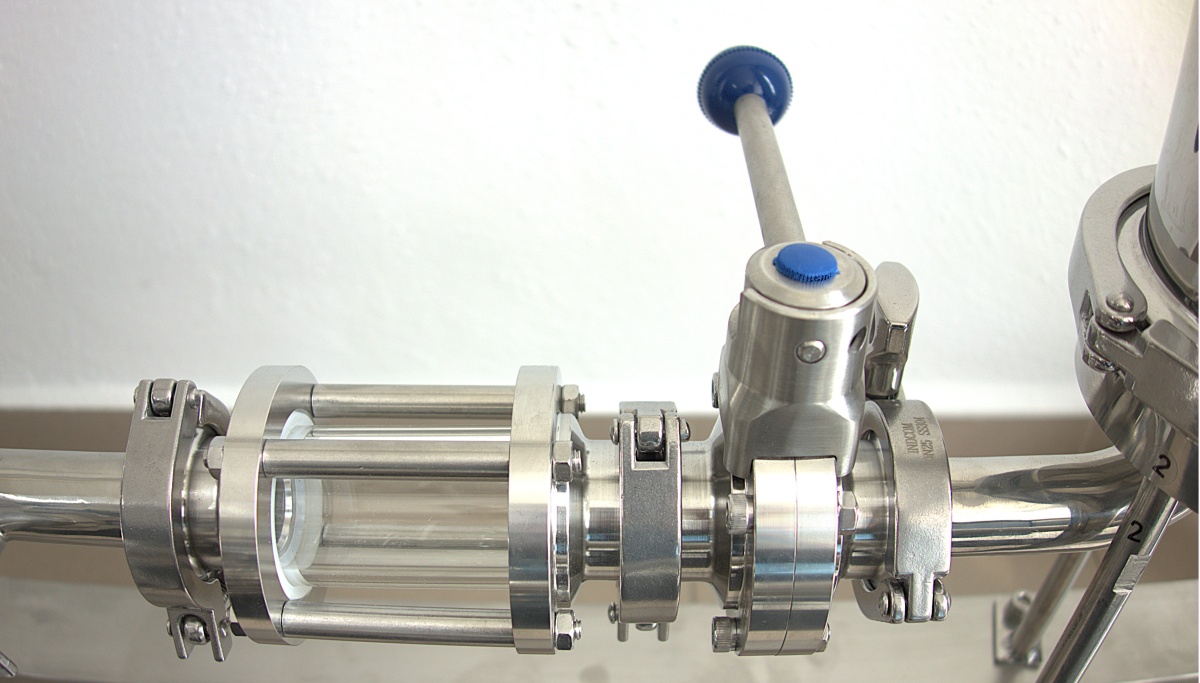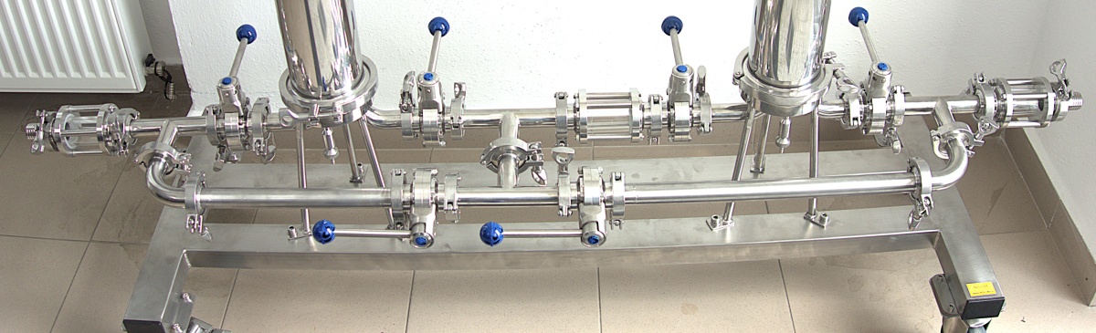 The filter housing is intended for direct contact with the filtered product. The candle is connected to the filter body by a lock (marked O-226). Connection of filter housing into the system of multiple-level filtration using DIN CLAMP coupling.