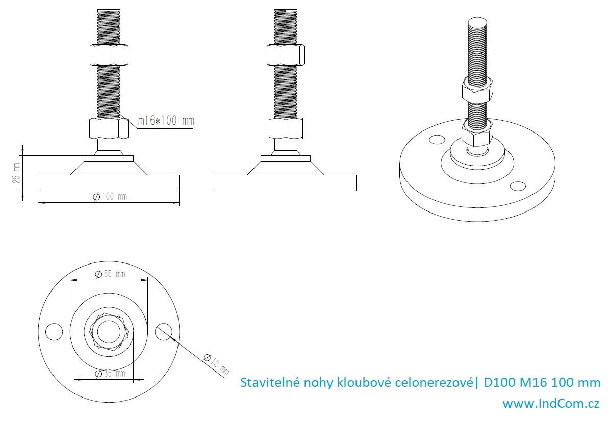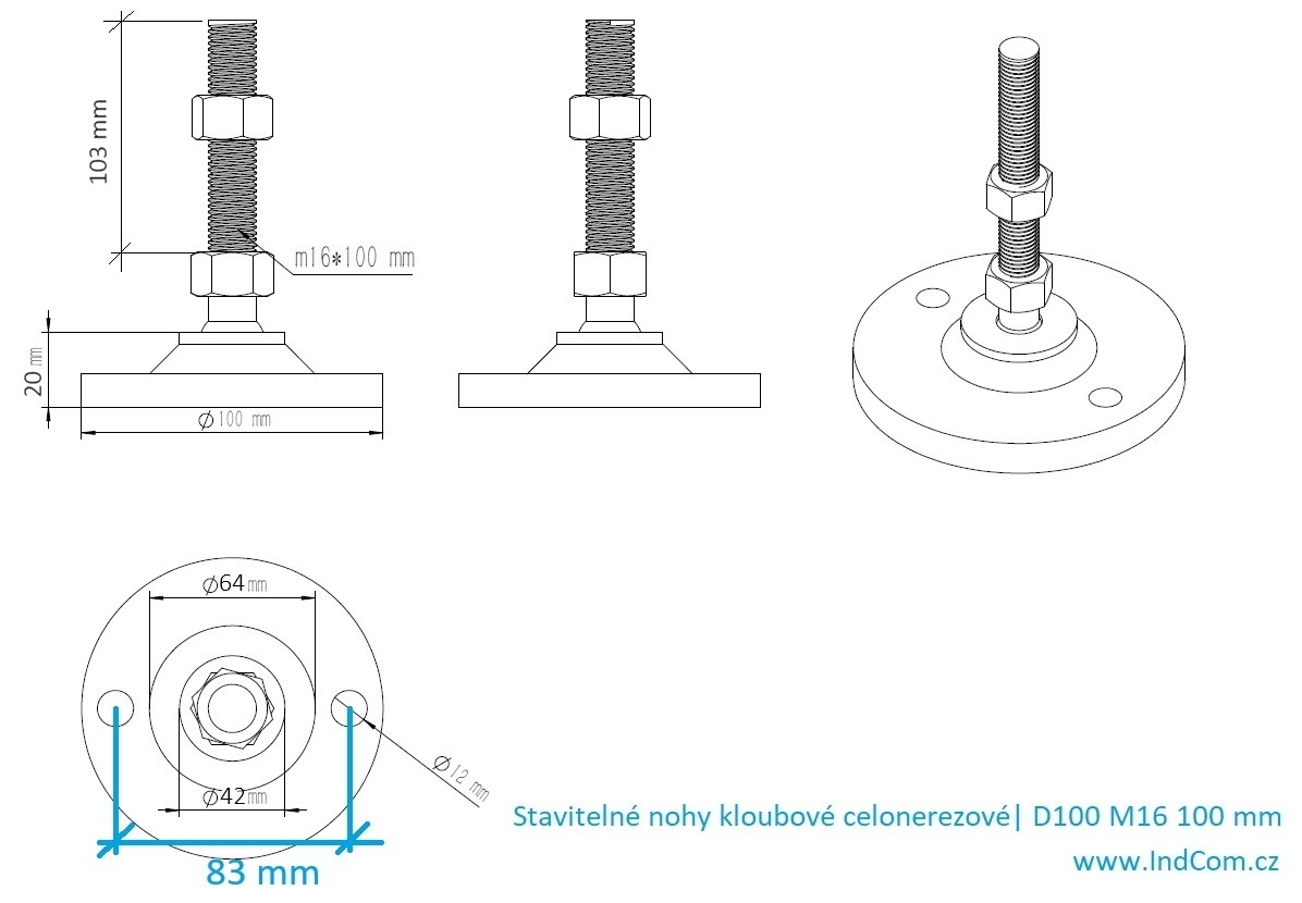 •  leg diameter 100 mm, screw M16, screw length 100 mm