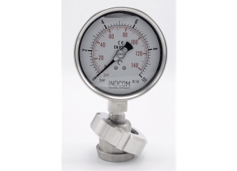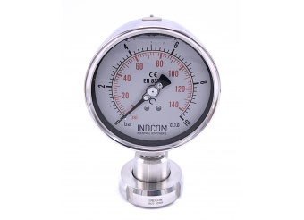 Stainless steel manometer with a sanitary diaphragm - sanitary union DIN 11851, dial 100 mm