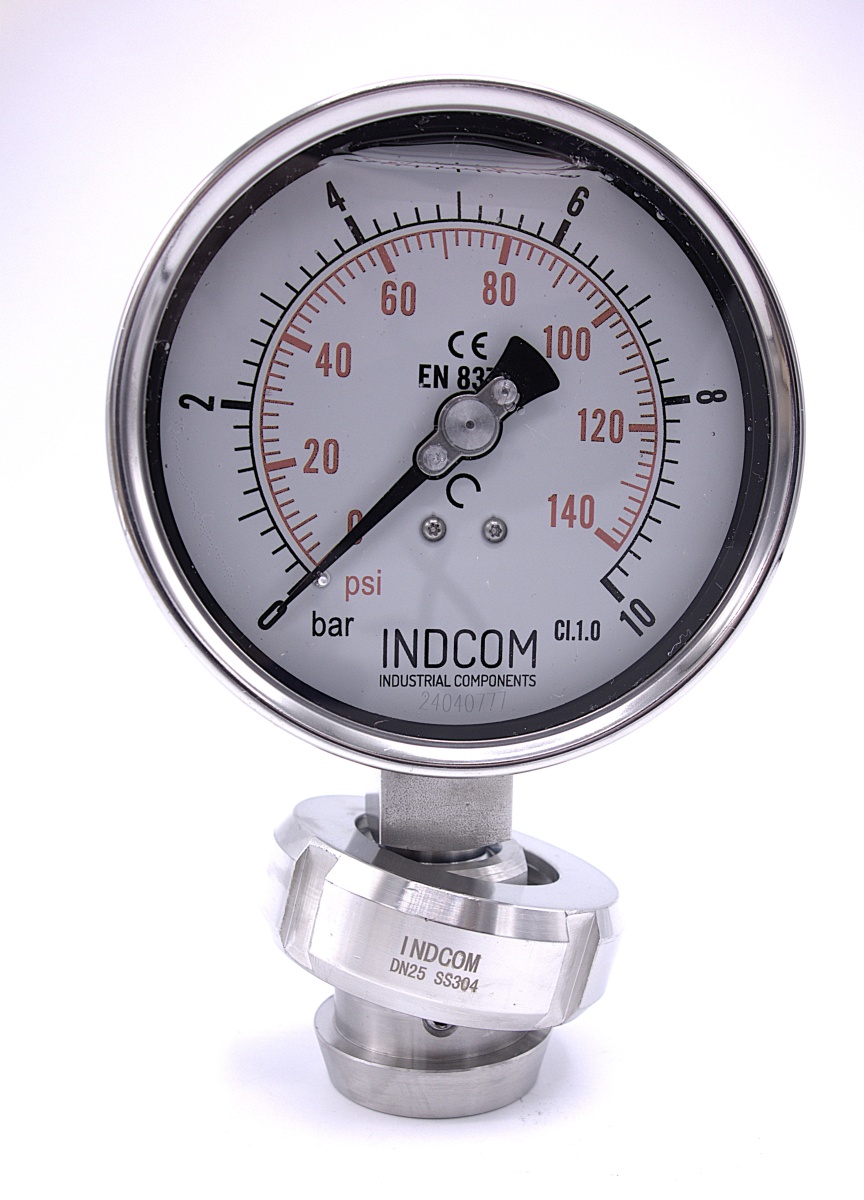 Stainless steel manometer with a sanitary diaphragm DIN 11851, dial 100 mm | nut DN25