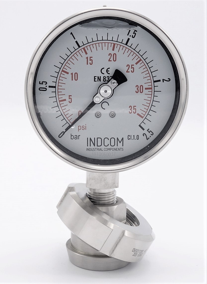Stainless steel manometer with a sanitary diaphragm, DIN 11851, dial 100 mm | nut DN32