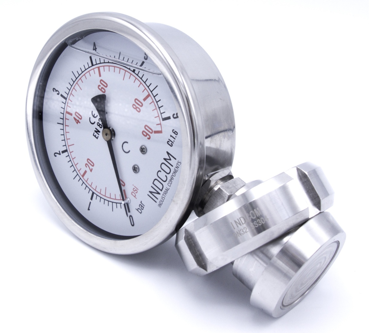 Stainless steel manometer with a sanitary diaphragm, DIN 11851, dial 100 mm | nut DN32