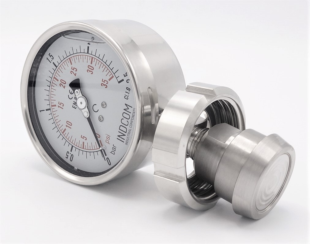 Stainless steel manometer with separating membrane, union DIN 11851, dial 100 mm, Nut DN40