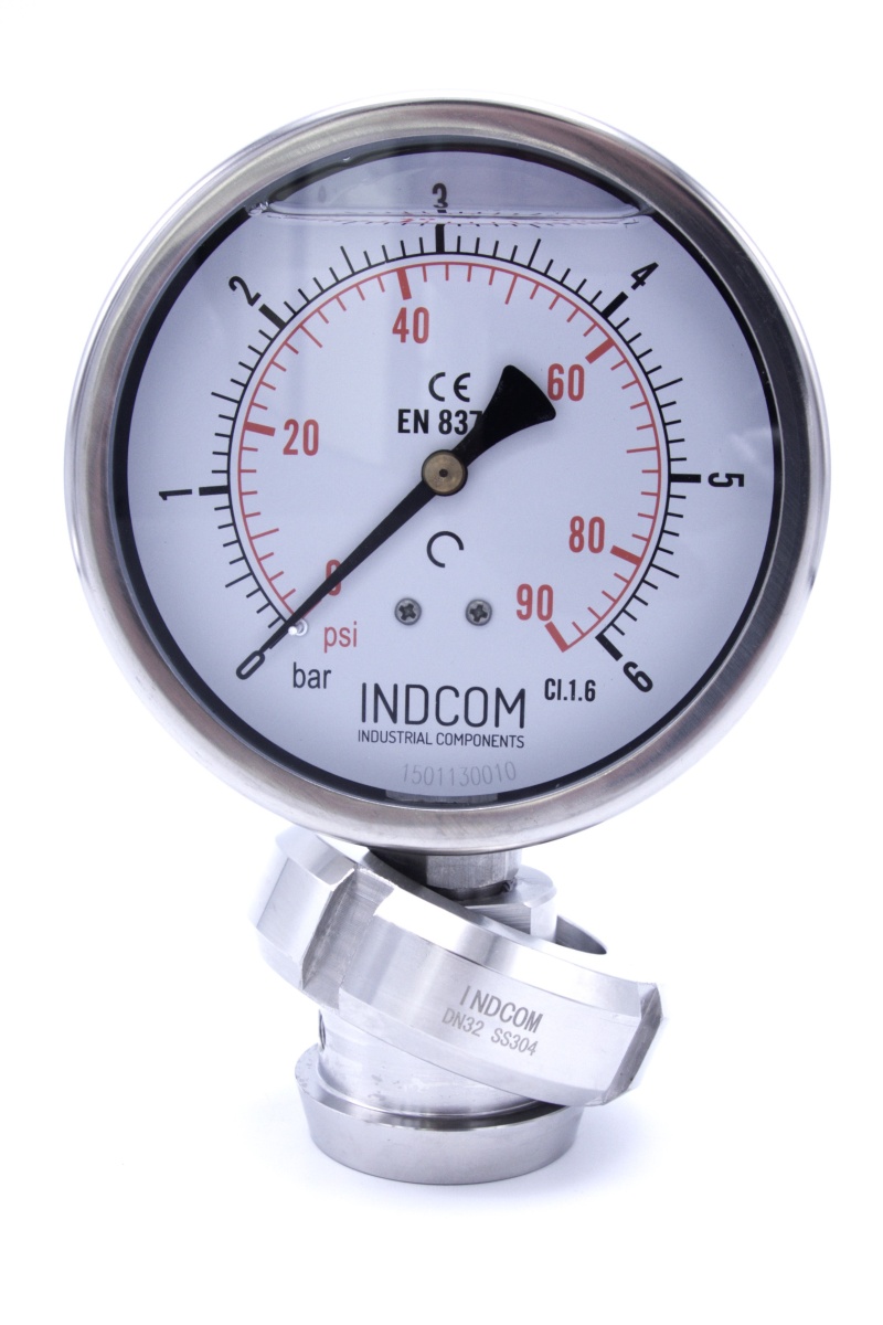 Stainless steel manometer with a sanitary diaphragm, DIN 11851, dial 100 mm | nut DN40