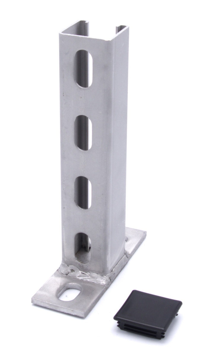 Robust design. U-profile rail 41 x 41 mm, welded on an anchor plate for direct wall mounting.