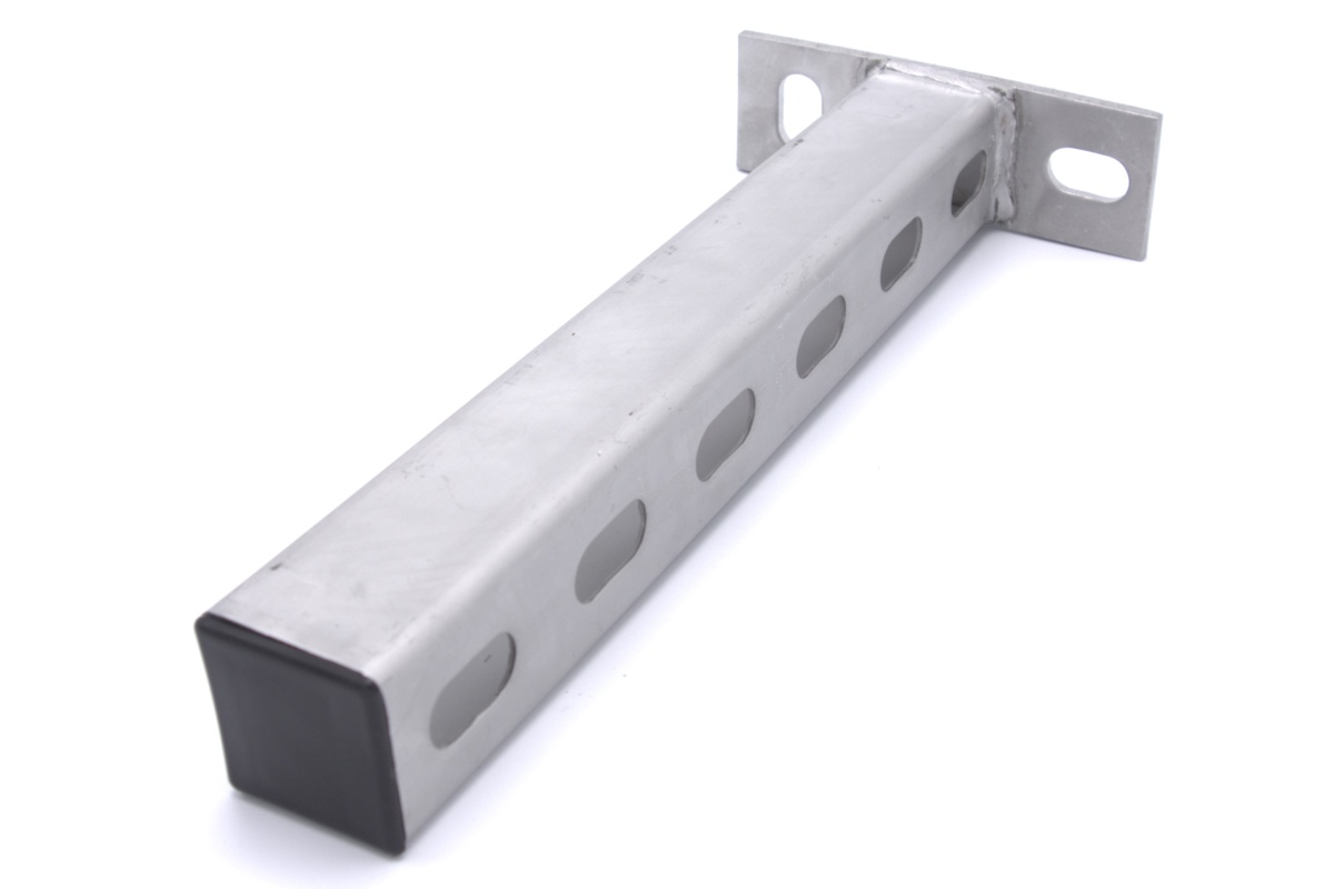 Robust design. U-profile rail 41 x 41 mm, welded on an anchor plate for direct wall mounting.