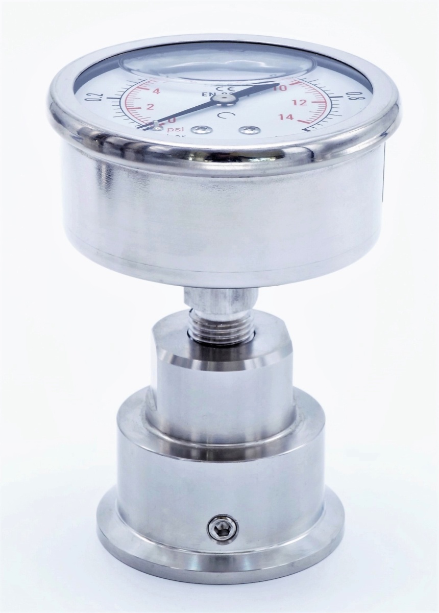 Installation of an all-stainless steel pressure gauge (manometer) with a sanitary diaphragm