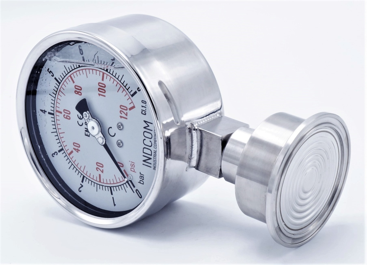 Stainless Steel Pressure Gauge, Dial 100 mm, Sanitary Diaphragm CLAMP DIN 32676 (64 mm)