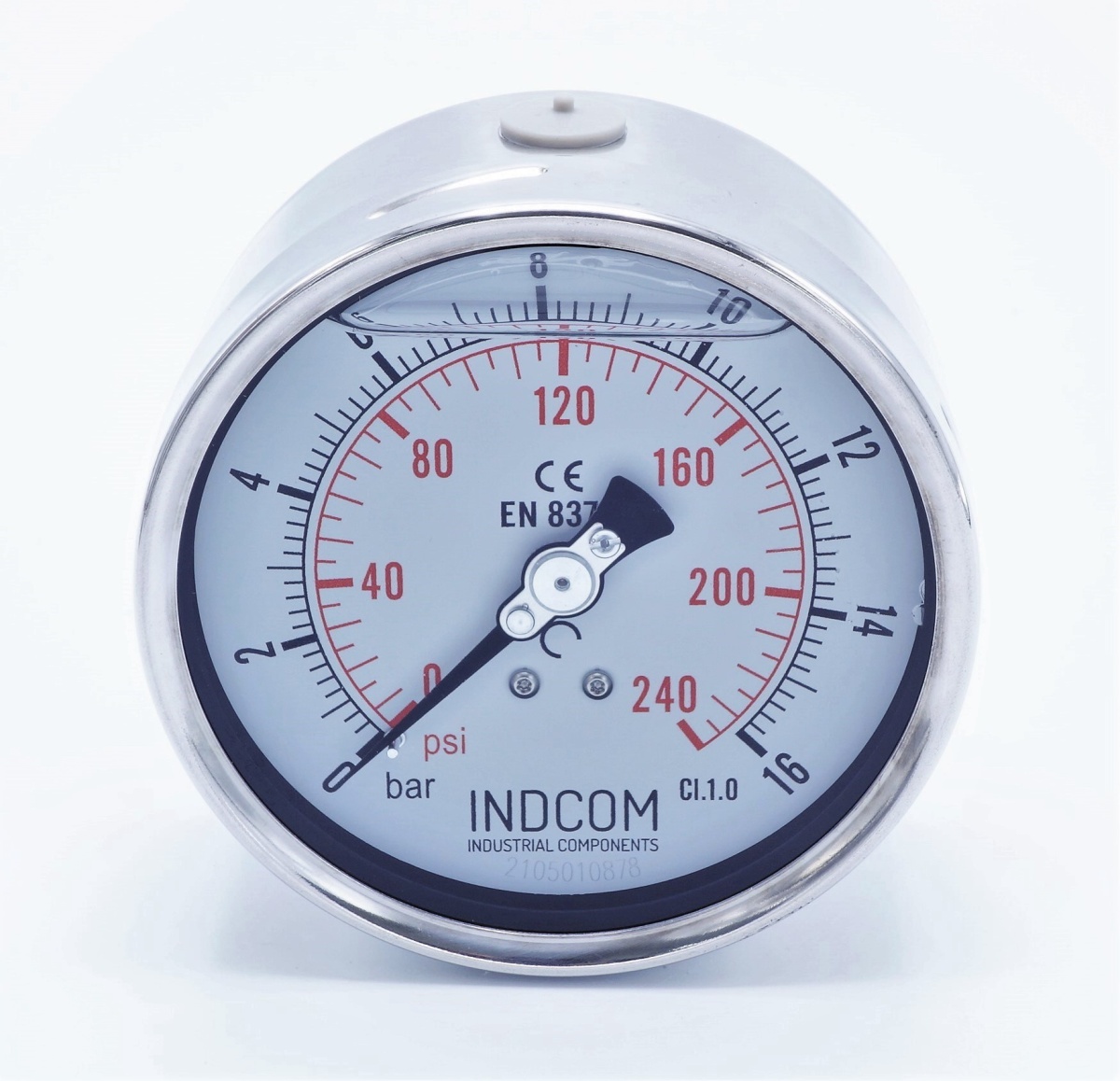 - It is supplied with a glycerine filling as a standard (protection against operational shocks).