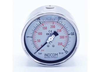 - It is supplied with a glycerine filling as a standard (protection against operational shocks).
