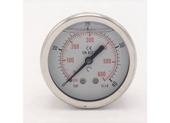• The pressure gauge is made of stainless steel, housing material 1.4301 (AISI 304), thread material 1.4401 (AISI 316).