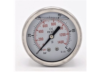 • The pressure gauge is made of stainless steel, housing material 1.4301 (AISI 304), thread material 1.4401 (AISI 316).