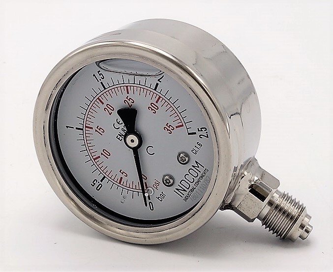 • all-stainless steel: AISI 304 housing material, AISI 316 thread material; the sensing device is a Bourdon stainless steel spring