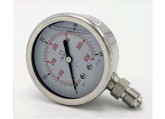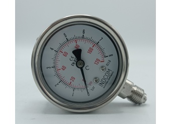 • all-stainless steel: AISI 304 housing material, AISI 316 thread material; the sensing device is a Bourdon stainless steel spring