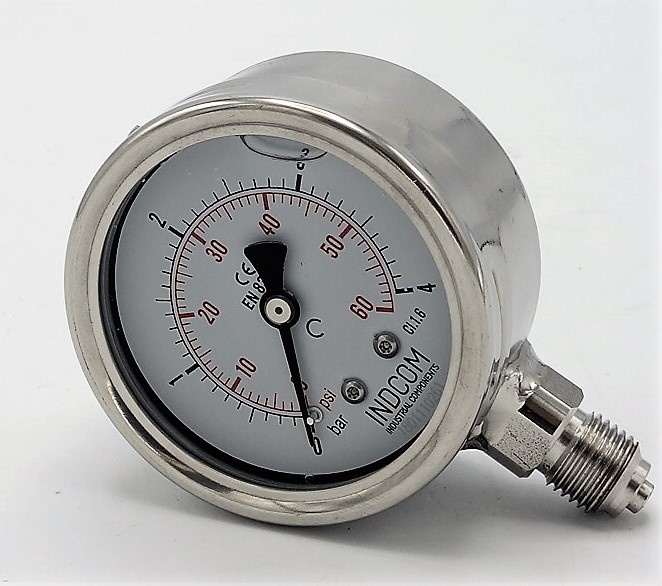 • all-stainless steel: AISI 304 housing material, AISI 316 thread material; the sensing device is a Bourdon stainless steel spring