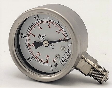 - The pressure gauge is made of stainless steel housing material AISI 304, thread material AISI 316. The sensing device is Bourdon stainless steel spring.