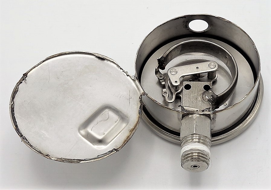 This all-stainless steel product guarantees consistently high accuracy, reliability, and protection against chemical corrosion. Housing material 1.4301 (AISI 304), thread material 1.4401 (AISI 316). The sensing device is a Bourdon stainless steel spring. The connector is welded by the TIG method. Pressure gauges are supplied with glycerine filling as standard (protection against operational impacts).