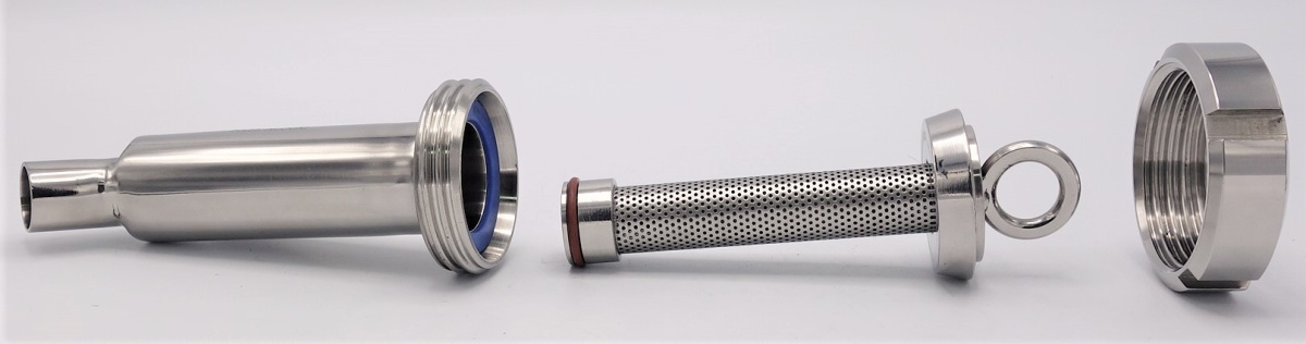 For shutdown during cleaning, it is advantageous to install the filter on the bypass or install a shut-off valve before and after the filter. When cleaning the filter, the sieve part is unscrewed. The strainer is removed and rinsed with a jet of water. We recommend preserving the fittings with Loctite 8105 grease.
