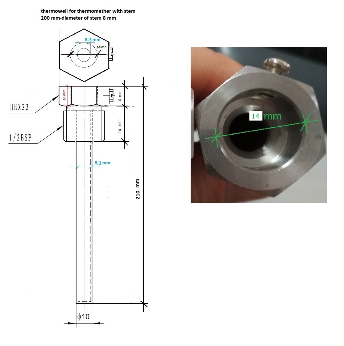 Stainless steel thermometer well suitable for thermometers in this category