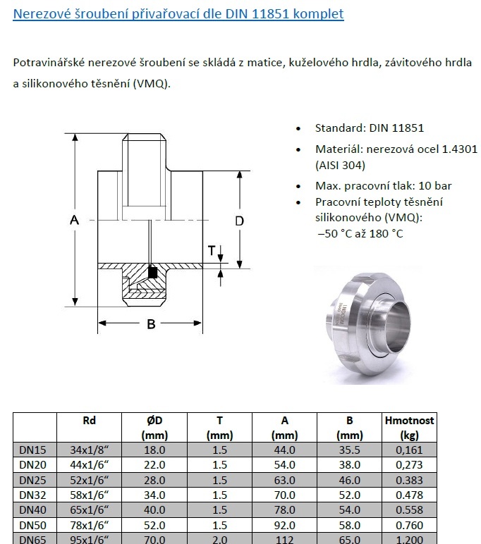 • Stainless Steel Sanitary Union Consists of a Nut, Liner, Male, and Silicon Gasket.