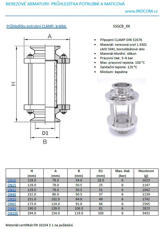 Straight sight glass, Clamp C-C