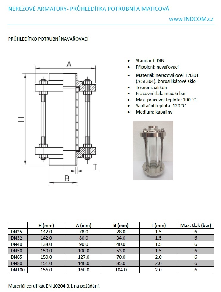 | Material | stainless steel 1.4301 (AISI 304), borosilicate glass |