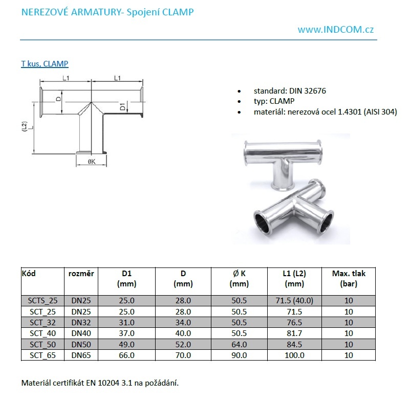 • Standard for DN10–DN100: DIN 32676, pipe DIN 11850
