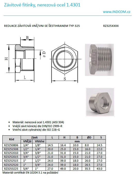 Threaded Reducer M/F / with Hexagon / Type 325