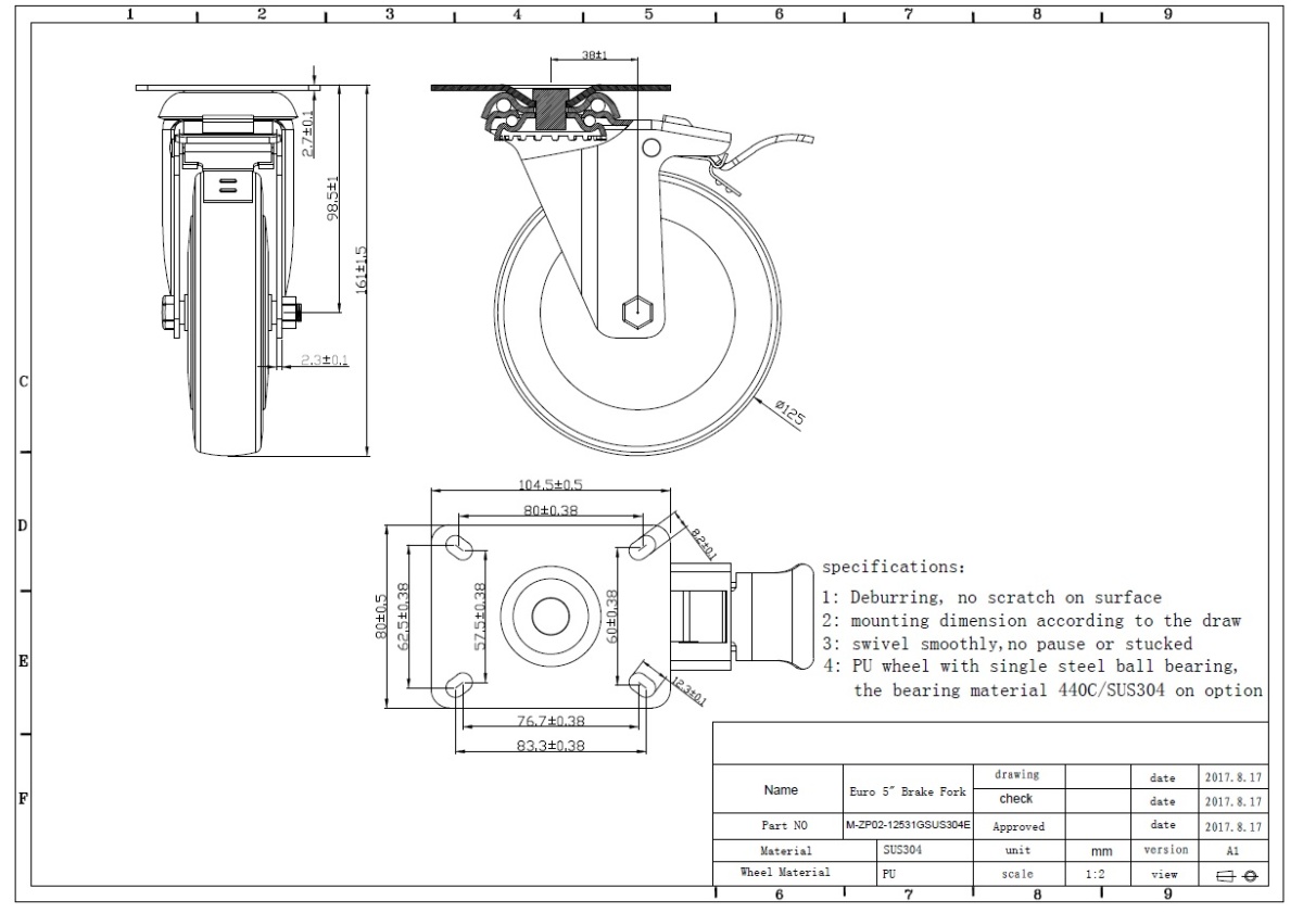 | Wheel size | diameter 125 mm, thickness 31 mm |
