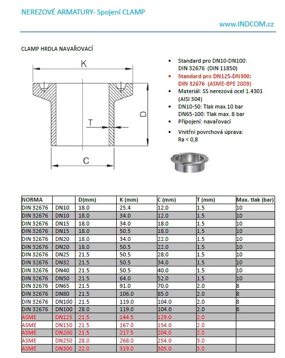 • Standard for DN125–DN300: DIN 32676 (ASME-BPE 2009)