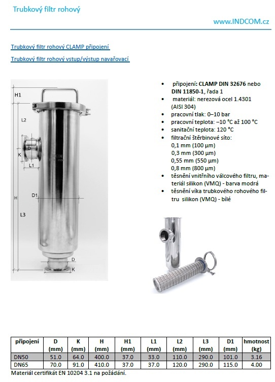 Tubular filter, CLAMP connection DN50 (collar clamp 64mm)