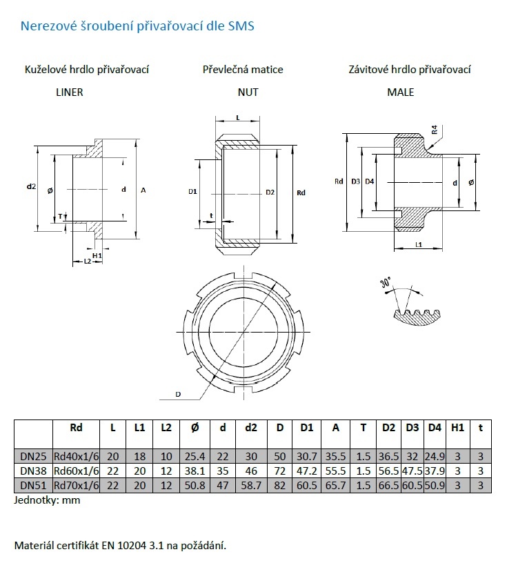 - Material: Stainless Steel 1.4301 (AISI 304)
