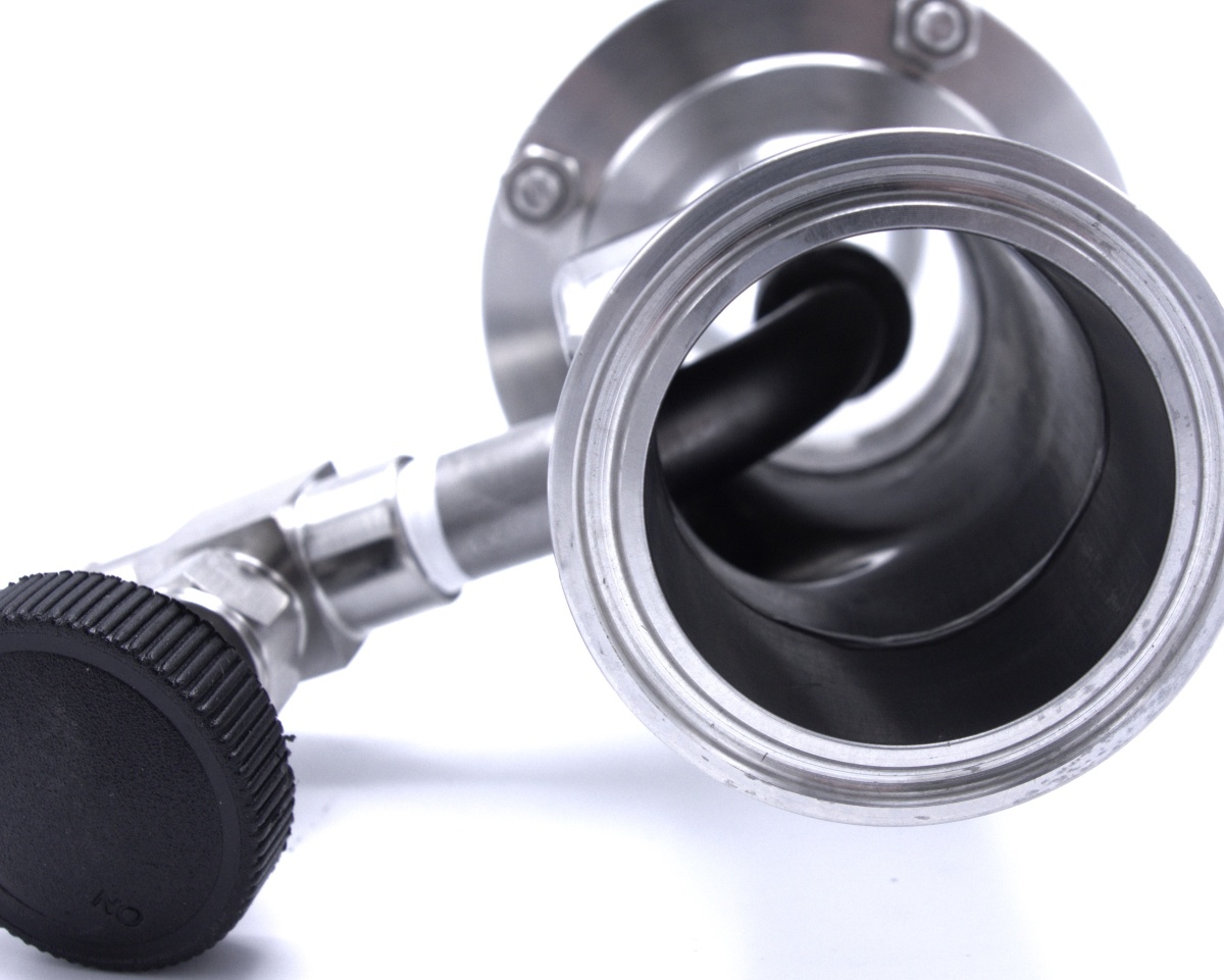 - The sight glass window lets you see the size and quantity of bubbles as the wort passes through the assembly.